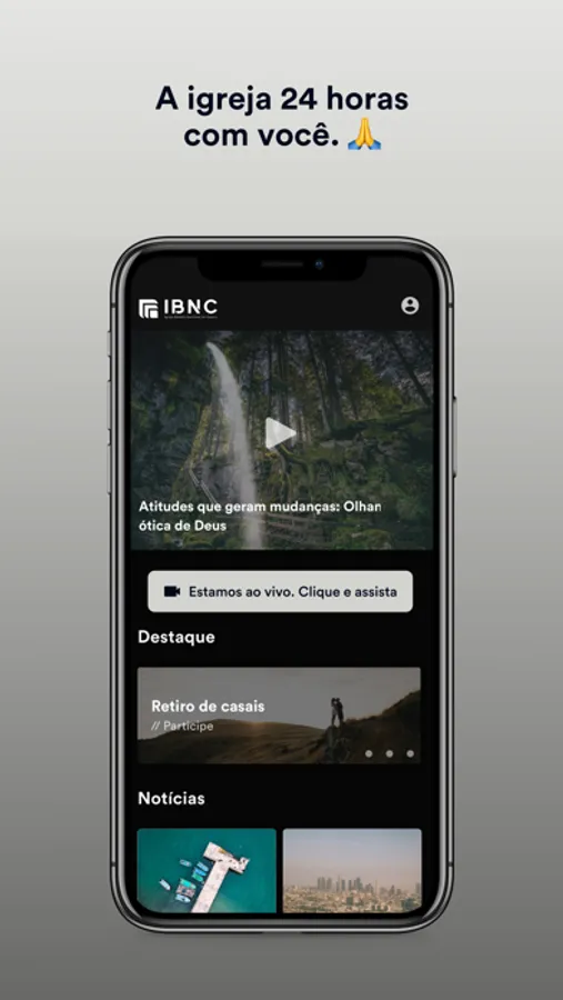 - Conecte-se com a igreja através dos grupos de interesse, receba conteúdo direcionado e obtenha sua carteirinha exclusiva.