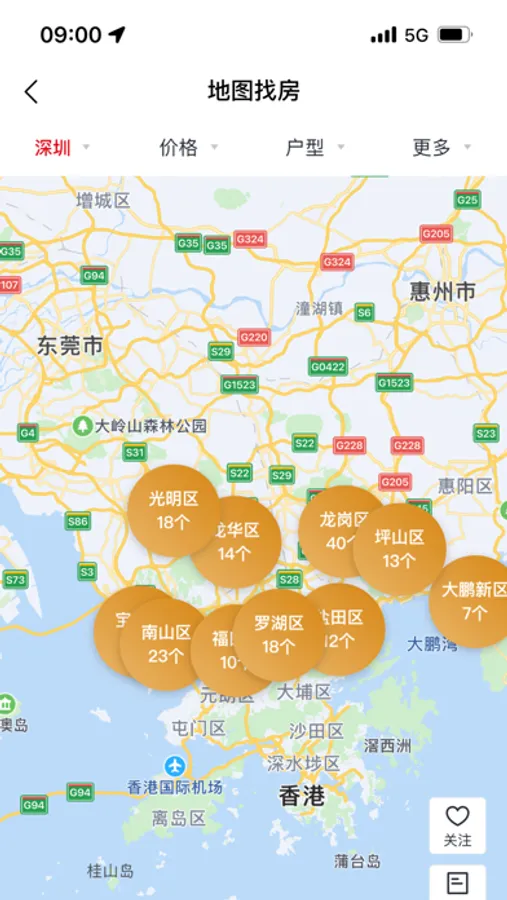 【找房更快捷】支持多维度复合搜索找房、地图找房,可根据房源所在城市、户型、面积、价格等条件筛选,高效找到心仪房源;