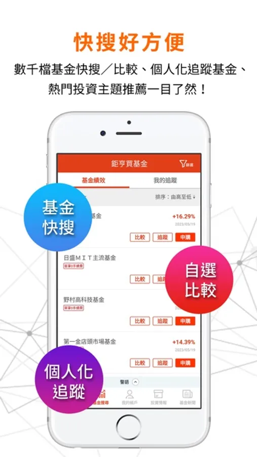 4.【快搜好功能】數千檔基金快搜、基金比較、個人化追蹤基金超好用!
