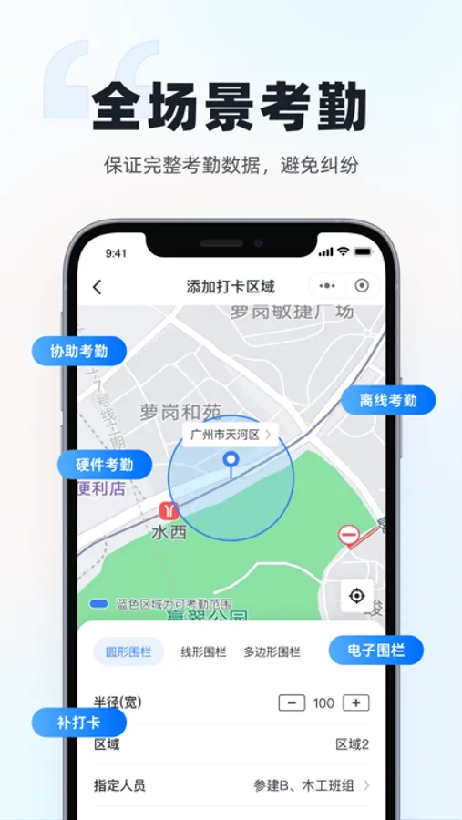 人脸识别+活体监测,保证本人亲自打卡,杜绝作弊。GPS电子围栏或手机+墨小盒精准定位,满足开放式和封闭式场景。手机没电可采用工友协助考勤,每台手机都是考勤机,更可实现离线考勤和海外项目考勤。