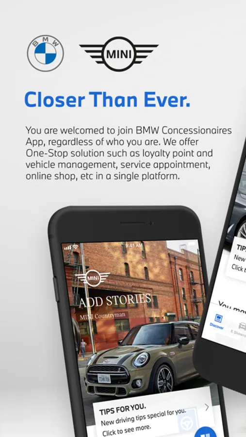 - Enjoy Everything BMW/MINI in ONE App: Manage your cars, book a service, and shopping all in one single platform