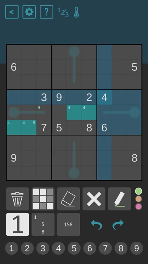 Miracle Sudoku features beautiful puzzles that at first glance look impossible to solve!! Indeed, some of our Miracle puzzles have as few as two givens digits (!) but you will find them all to be solvable with a bit of clever logic! At launch you will be able to play through 4 variants all of which make use of a non-consecutive restraint (ie neighboring cells cannot have two consecutive numbers in them). They are Non-Consecutive Sudoku, classic Miracle Sudoku (non-consecutive + knight + king restrictions), Non-Consecutive Thermo Sudoku and Non-Consecutive Sandwich Sudoku. Each of these variants has a unique feel which refreshes the logic you may be used to, especially in thermo and sandwich sudoku!