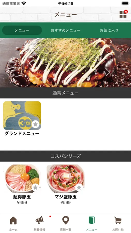 おすすめのお好み焼きメニューのご紹介や、お得なクーポン、期間限定キャンペーンなどをお知らせいたします。