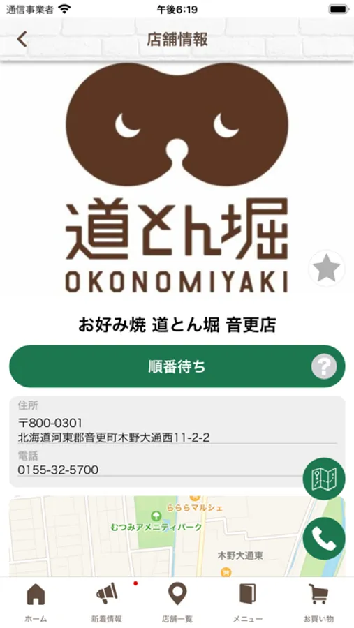 店舗一覧から、よく行く「お好み焼 道とん堀」の店舗や近くの店舗を簡単に探すことができます。