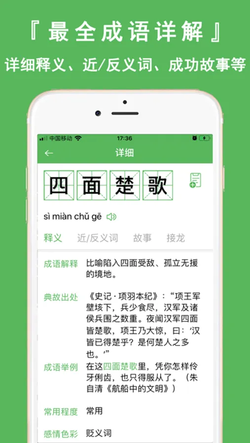 【离线成语大词典】50000+离线成语大词典,详解成语的“前世今生”,没有更细的了。