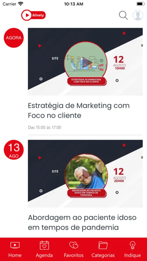 Pessoas poderão adicionar todas as lives que quiserem assistir ao calendário para ser lembradas no dia e horário que elas acontecerão. Crie a sua programação de lives na sua agenda e não perca nenhum conteúdo com o Alively