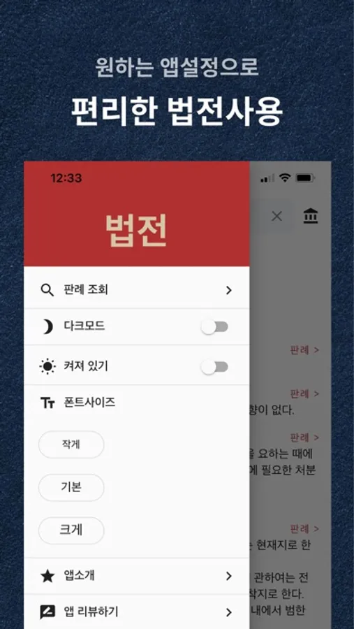 - 법전을 수시로 열람하는 법조계 종사자 분들의 필수 앱!