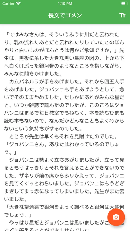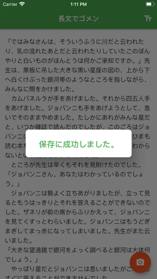 アプリ内でスクリーンショットを撮影し、長文を画像化します。