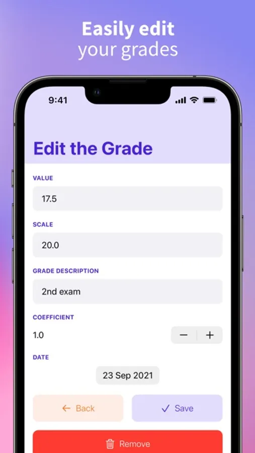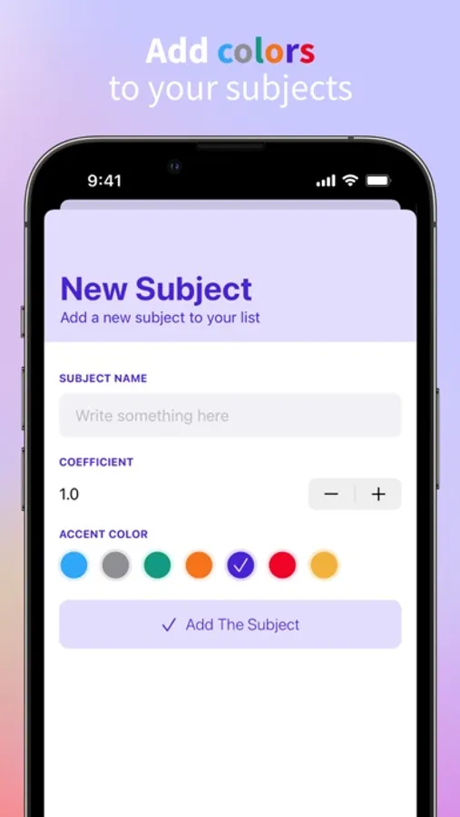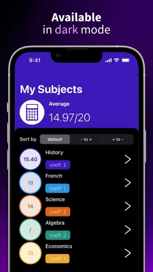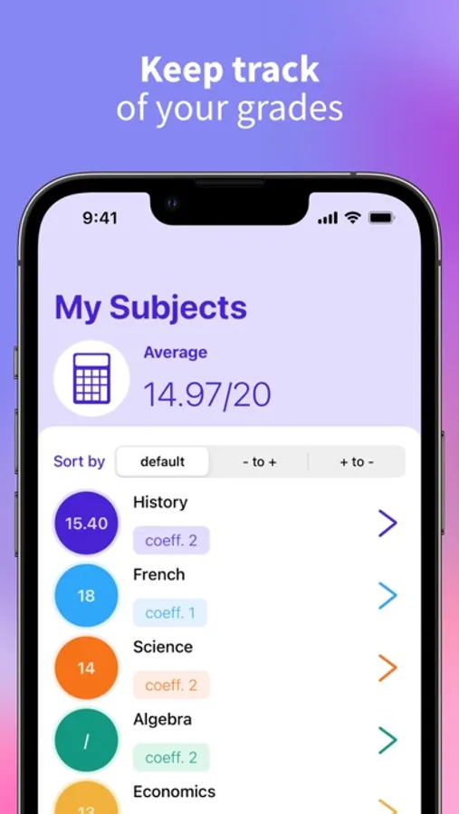 Save all your subjects, then add your grades. The app computes your overall average and the average of each subject.