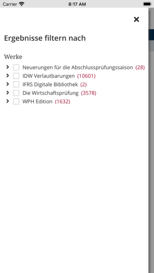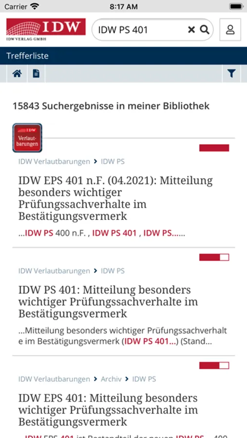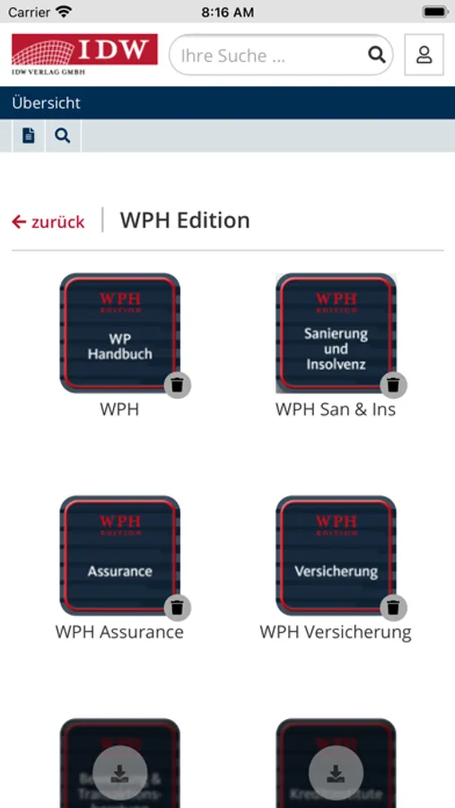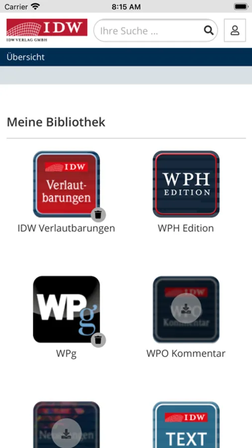 In der IDW Bibliotheks-App können Sie u.a. die folgenden Produkte nutzen: