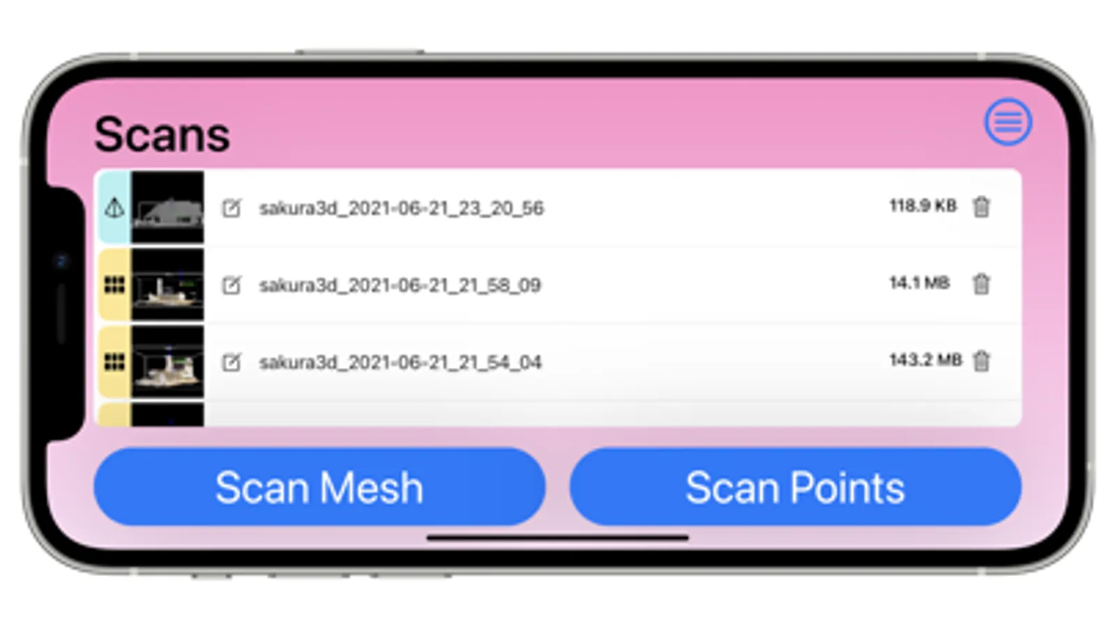 ■ Sakura3D SCAN requires the LiDAR sensor for scanning, as a result we only support the following devices