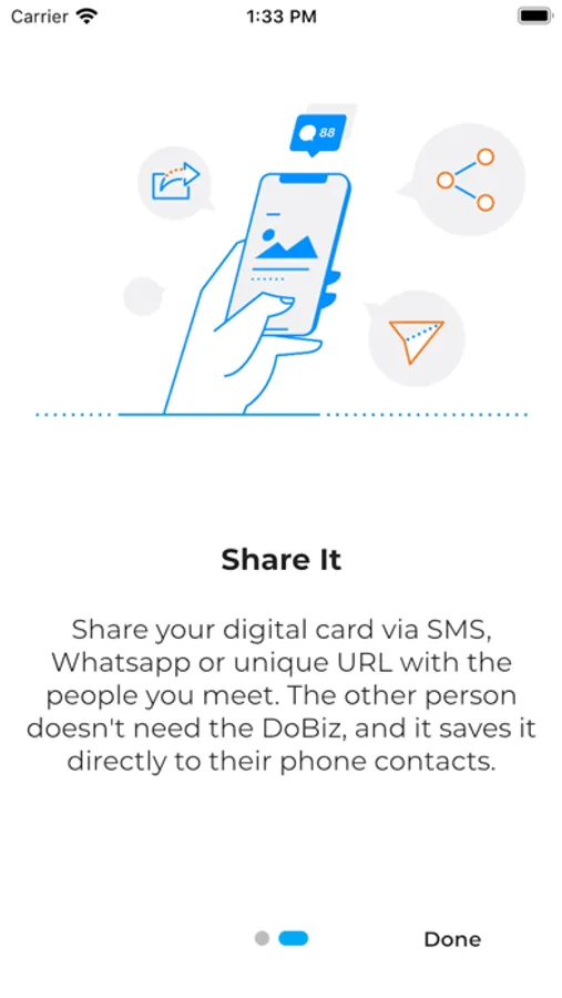 From DoBiz.in, you can create your very own digital business card! Instead of taking business cards from others, you can exchange this card via Web, SMS, Whatsapp, Facebook, Chat or E-mail.