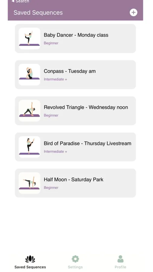 Once you select a class level, a filtered list of peak poses will display appropriate for that level.