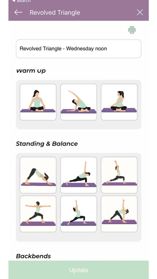 The yoga sequences you create can then be printed, saved, edited and deleted.