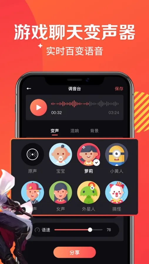 2020最新变声器,王者吃鸡语音神器,海量录音特效男变女、女变男、大叔一秒变萌妹,更有超多热门语音包,键盘操作一键发送!