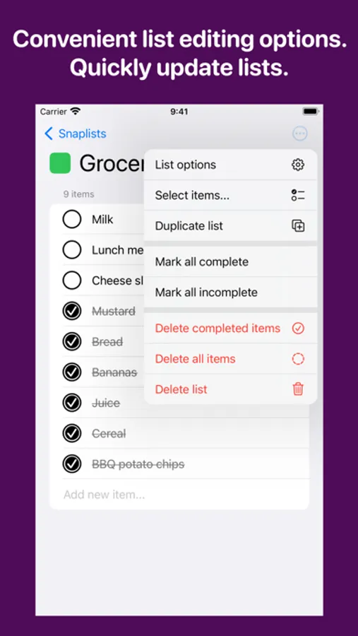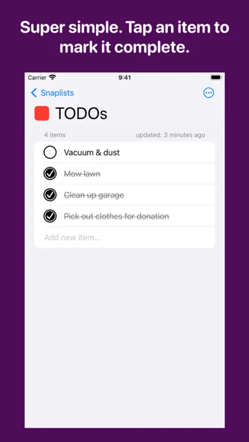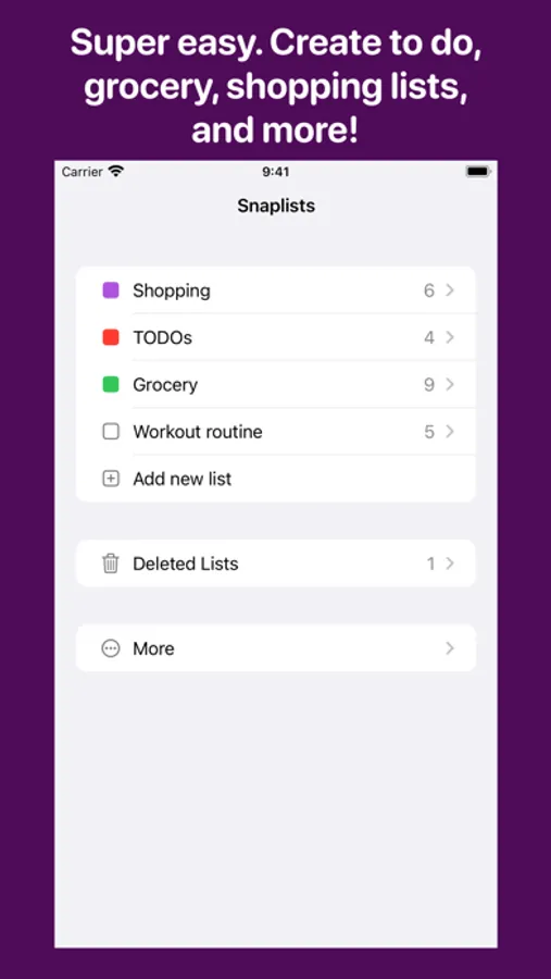Snaplists is a simple list-making app. Use it to create to-do lists, grocery lists, shopping lists, etc. Manage your lists on the go from your Apple Watch! Lists sync across all your devices.