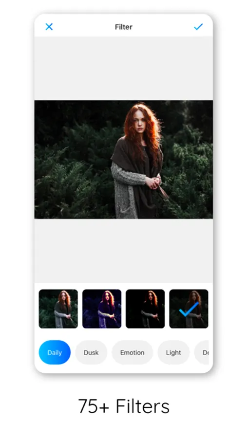 With filters & effects, you can easy to enhance your photos. You can also edit photo with many editing tools like brightness, contrast, saturation, sharpness, etc to make your photo as perfect as it gets!