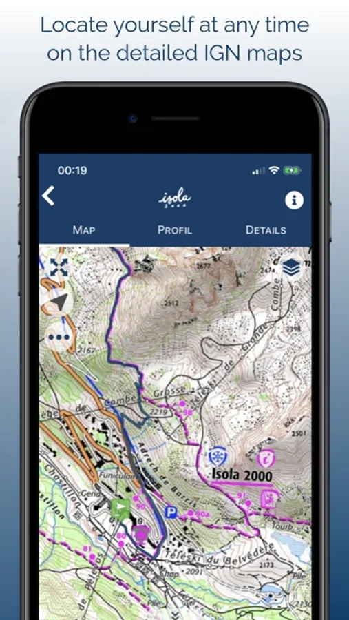 • get your location on the detailed IGN maps with the GPS