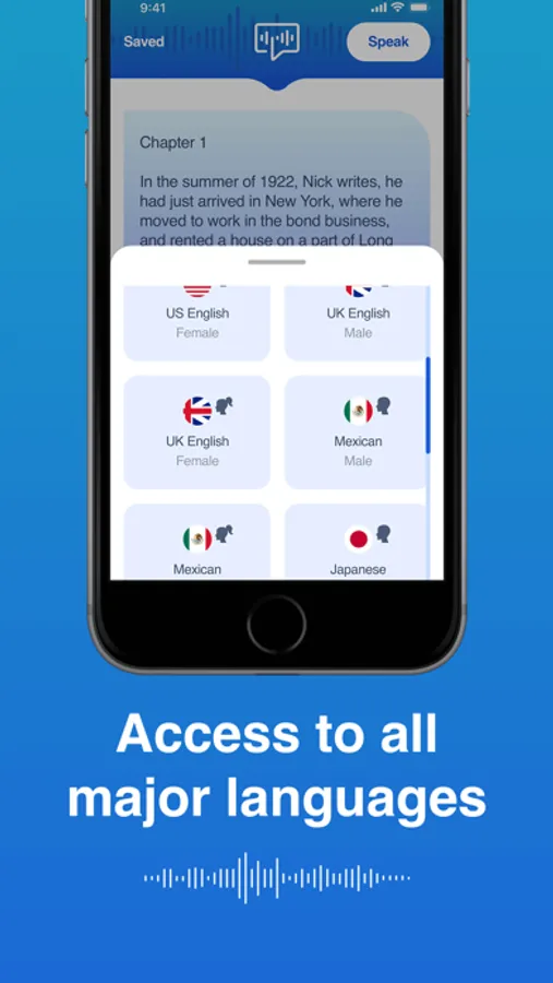 Text to Speech Plus+ App lets you read aloud anything you copy into it. It's great help while you are multitasking, listening to news, reading an ebook or learning a new language.