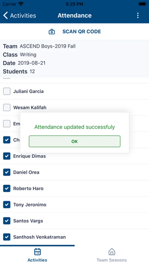 - Take attendance with the QR scanner.