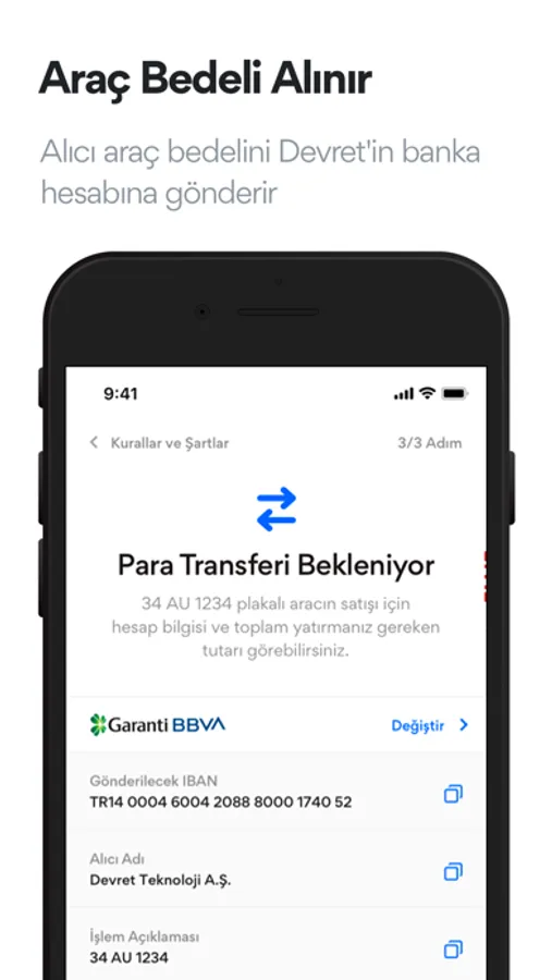 Devret ile ikinci el araç devir işlemlerinde para transferi ve aracın noterde devrinin eş zamanlı gerçekleştiğinden emin olabilirsiniz. Devret para transferinin aracın noterdeki satışı ile aynı anda gerçekleşmesini sağlar.