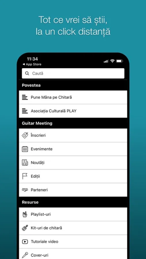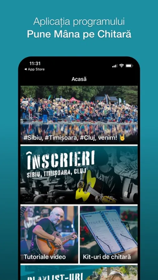 Aplicația Pune Mâna pe Chitară își propune să faciliteze accesul la informații relevante chitariștilor despre evenimente dedicate lor și să le ofere resurse pentru a învăța mai ușor acest intrument. Platforma pune la dispoziție gratuit o listă de peste 35 de tutoriale video ale unor piese rock-folk etalon din muzica românească și internațională și un Kit de Chitară cu tabulaturi ale cântecelor.