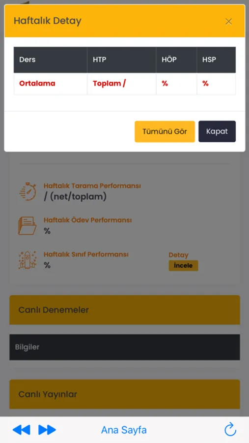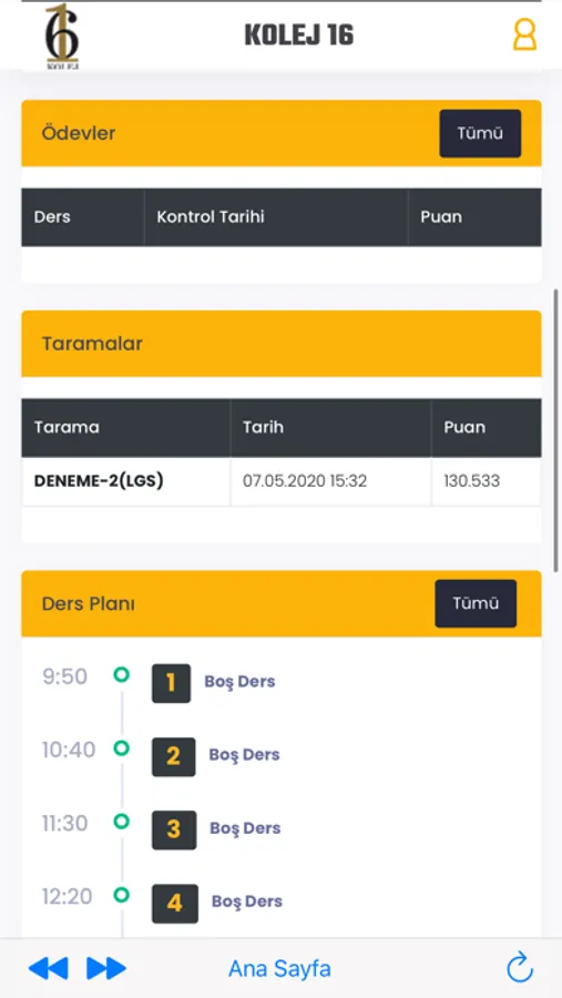 Haftalık tarama sınavlarını anlık olarak mobil uygulamadan inceleyip karşılaştırabilir.