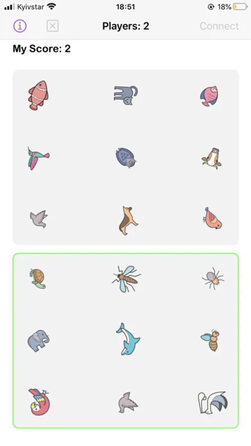 Connect with your friends and play. You have to find the common image in both fields. A player who taps on the image first gets the point. Try to be faster than your friends and win.