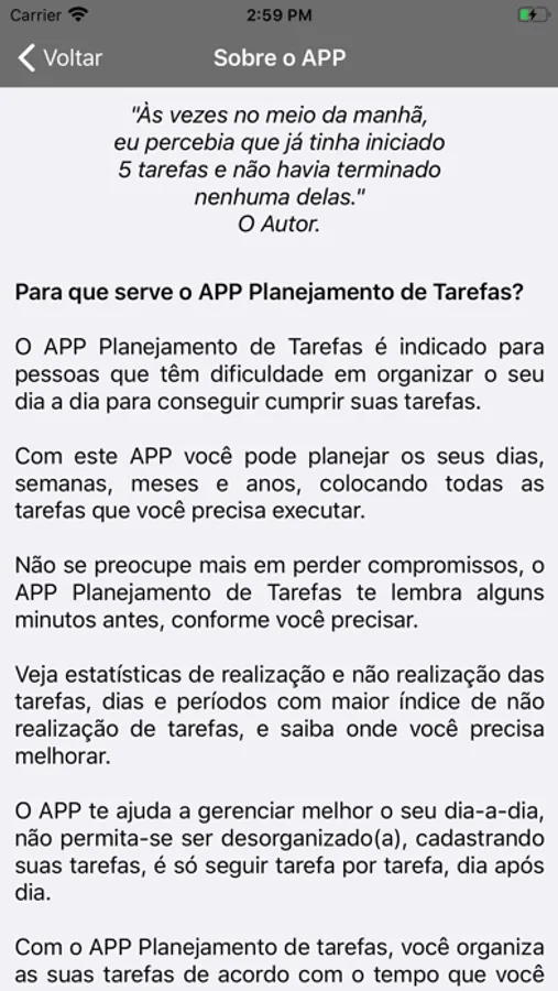 Ele te avisa antes de compromissos importantes e te mostrar o índice de tarefas cumpridas x não cumpridas e muito mais.