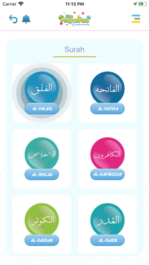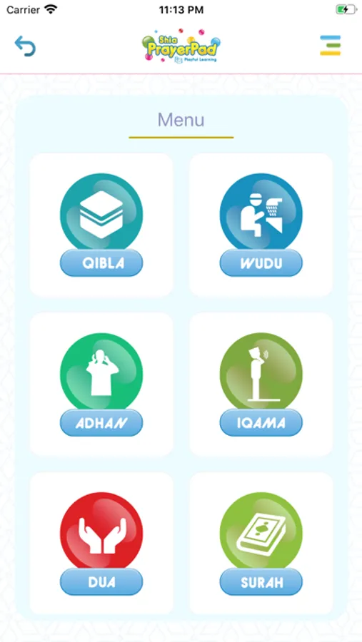 PrayerPad has pre-recorded keys to educate children about Salah, for example, prayer names, surahs, basic duas, and more. It educates learners about Salah times and what to state during different positions and various bodily movements.