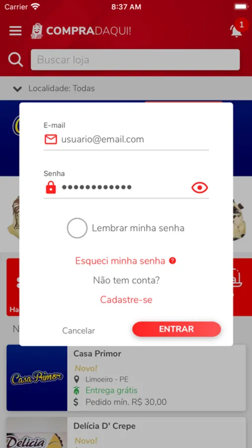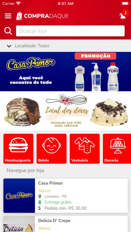 O principal objetivo da aplicação é realizar compras simples no comércio local sem ter que se locomover até ele. No app você pode visualizar vários lojistas de vários segmentos, que possuem uma vasta variedade de produtos para todas as necessidades. Com um acesso mais amplo a esses produtos o usuário poderá comparar preços para montar seu carrinho na loja que melhor atende ao seu bolso.