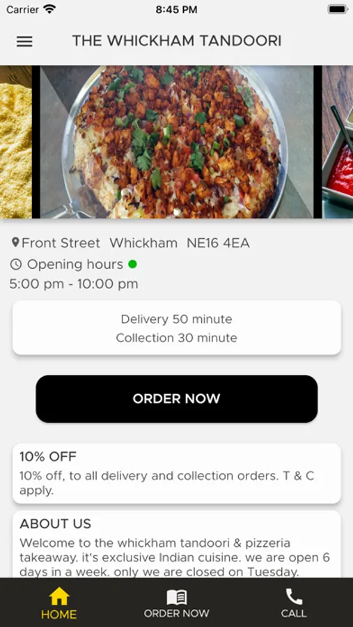 Welcome to the whickham tandoori & pizzeria takeaway. it's exclusive Indian cuisine. we are open 6 days in a week. only we are closed on Tuesday. Home delivery service is available here. most of the areas we charge only £2.00 for home delivery. our location is 33 front street, whickham, NE16 4EA Our aim is to have a satisfied customer