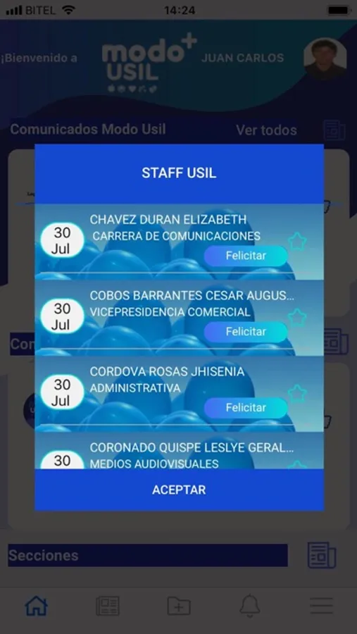 - Comunicados: Visualiza las noticias que Usil publica, guárdalos y compártelos.