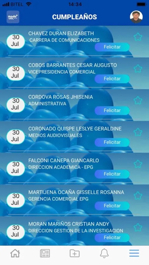 - Cumpleaños: Visualiza los cumpleaños de tus compañeros, envía y recibe saludos.