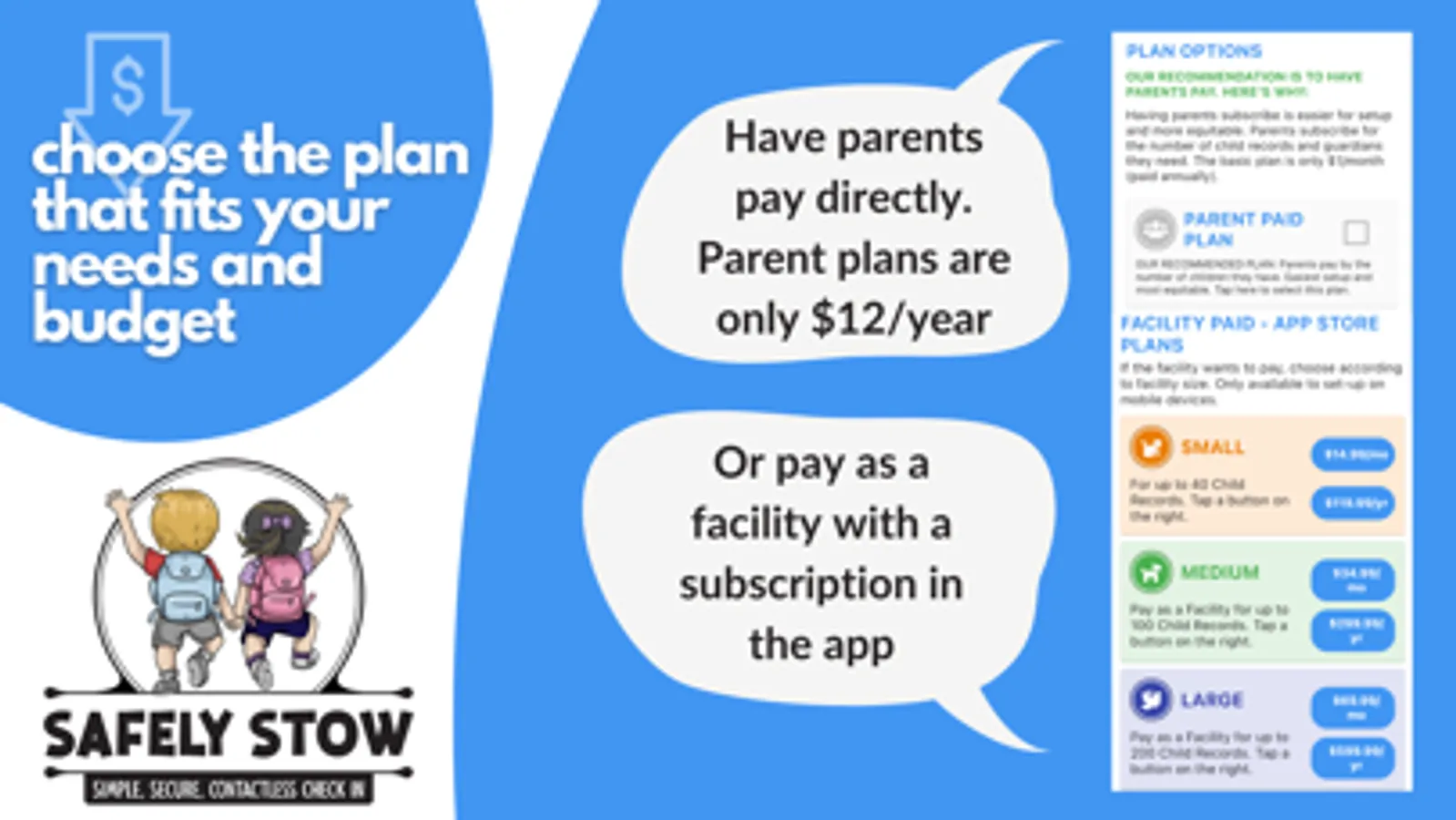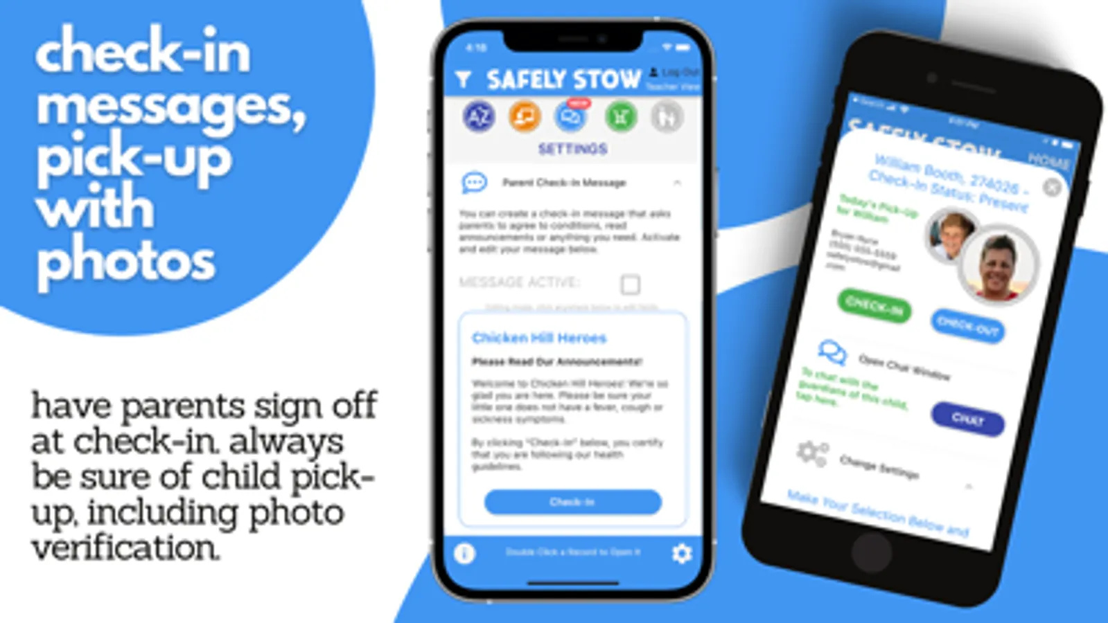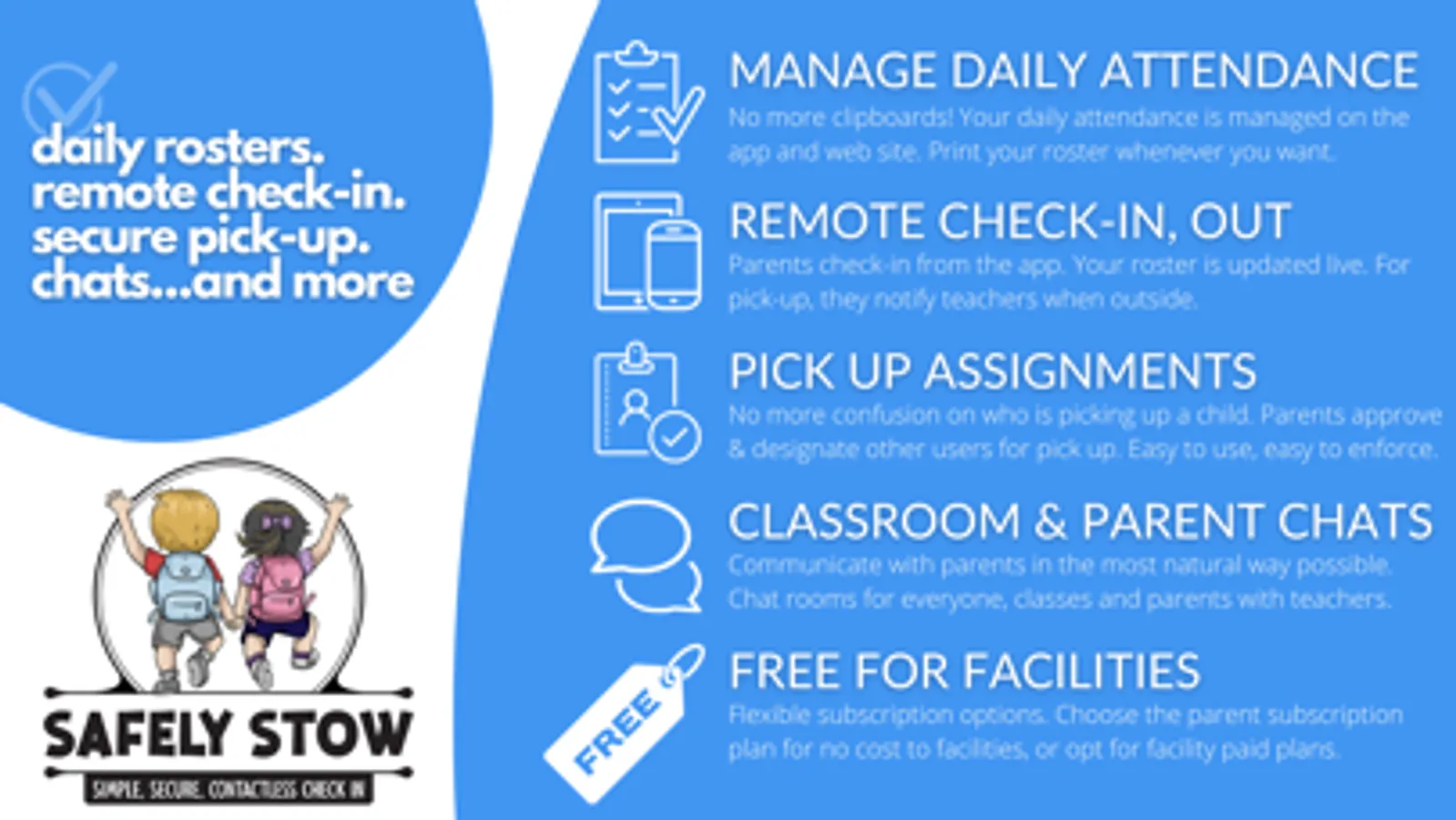 Safely Stow remote childcare check-in is the quick and simple solution for child care facilities. With this incredibly easy to use pick-up and drop-off app, you will be able to offer:
