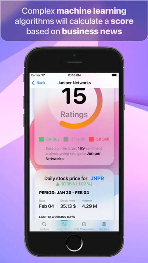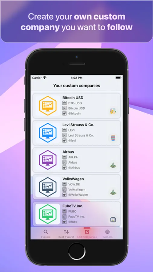 You can also add, manage and save your own companies as well as cryptocurrencies to get a calculated score based on business news.