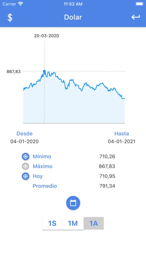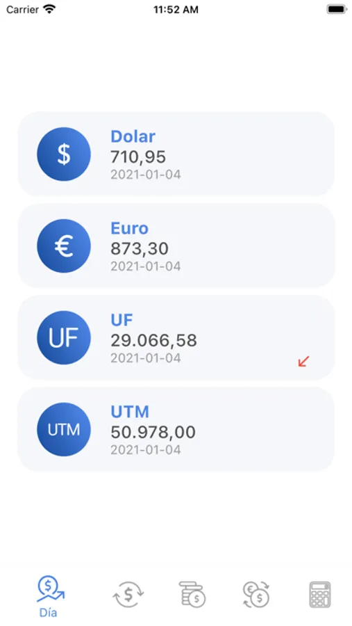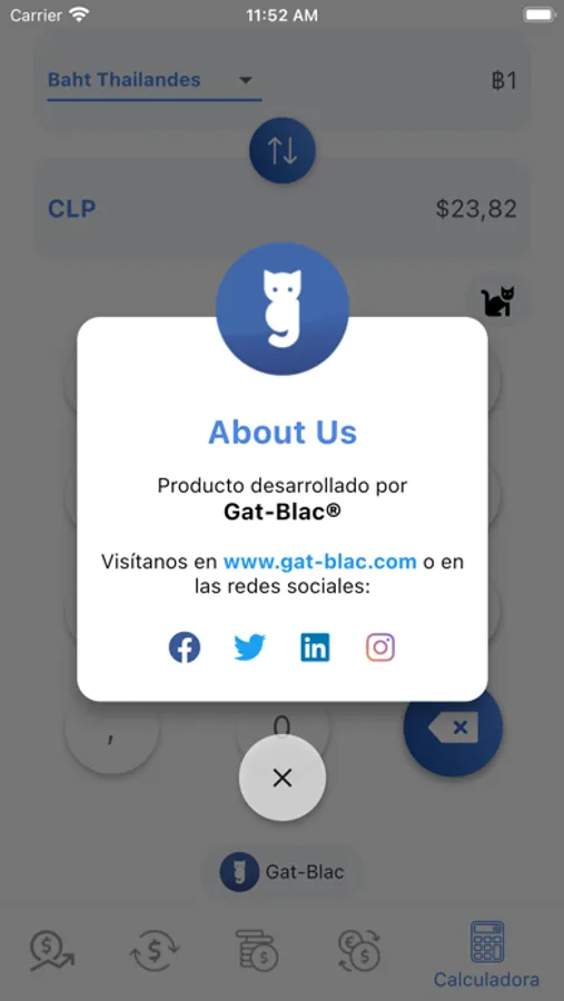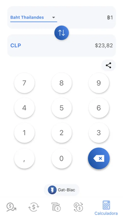 CALCULADORA: La aplicación también ofrece una calculadora que permite convertir a peso chileno la cantidad de una moneda seleccionada.