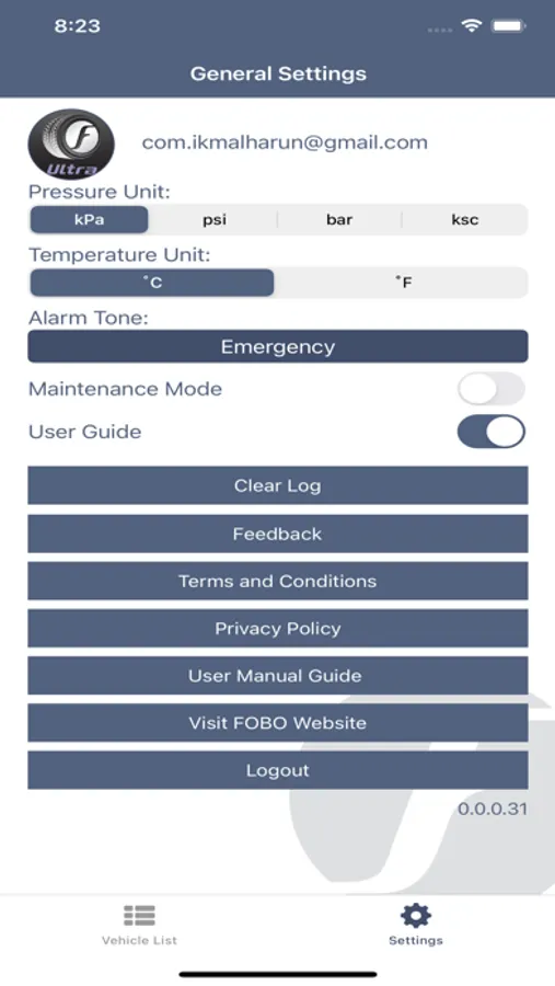 The main function of FOBO Ultra is to monitor air pressure and temperature of tires of heavy vehicles. It then transmits the readings to a smart phone and its In-Car unit where the user can browse. The user can set upper and lower thresholds of the air pressure. FOBO Ultra will monitor the pressure based on the thresholds with its smart algorithm and will provide three levels of alerts when the thresholds are breached.