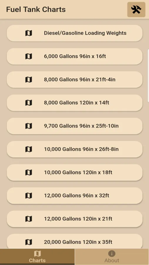The developer of Fuel Tank Charts does not guarantee the capacity chart’s accuracy and in no way takes liability for loss due to its content. Usage of chart will be considered acceptance of this agreement.