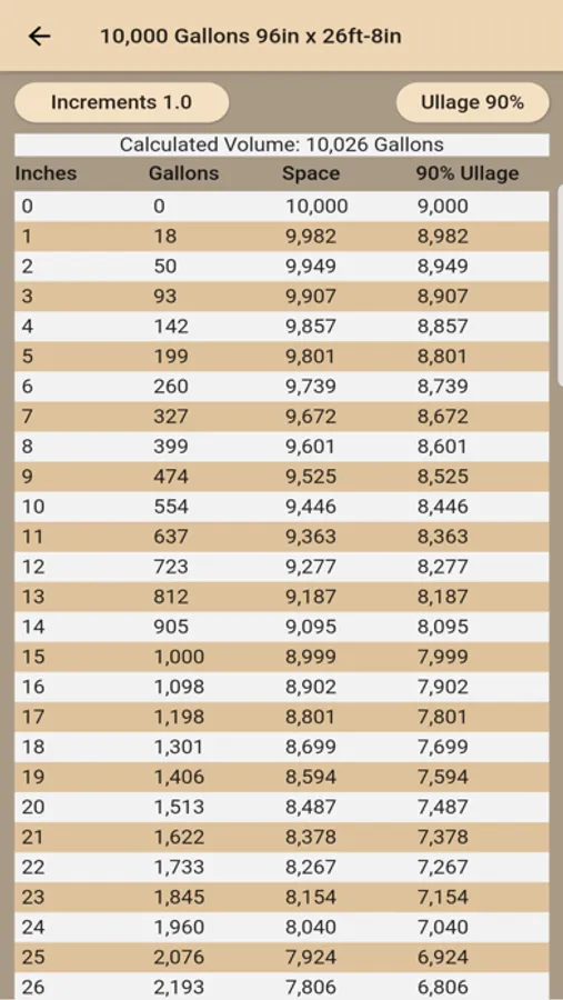 Reference the tank chart's stick readings for tank ullage at 90% or 95%.