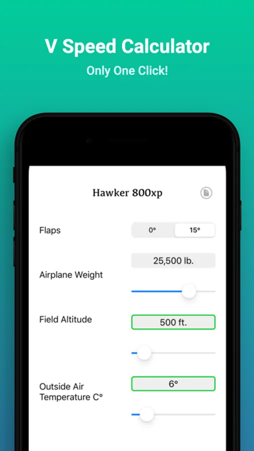 Gets the nearest airport altitude and temperature automatically, Just enter airplanes weight and hit Calculate.