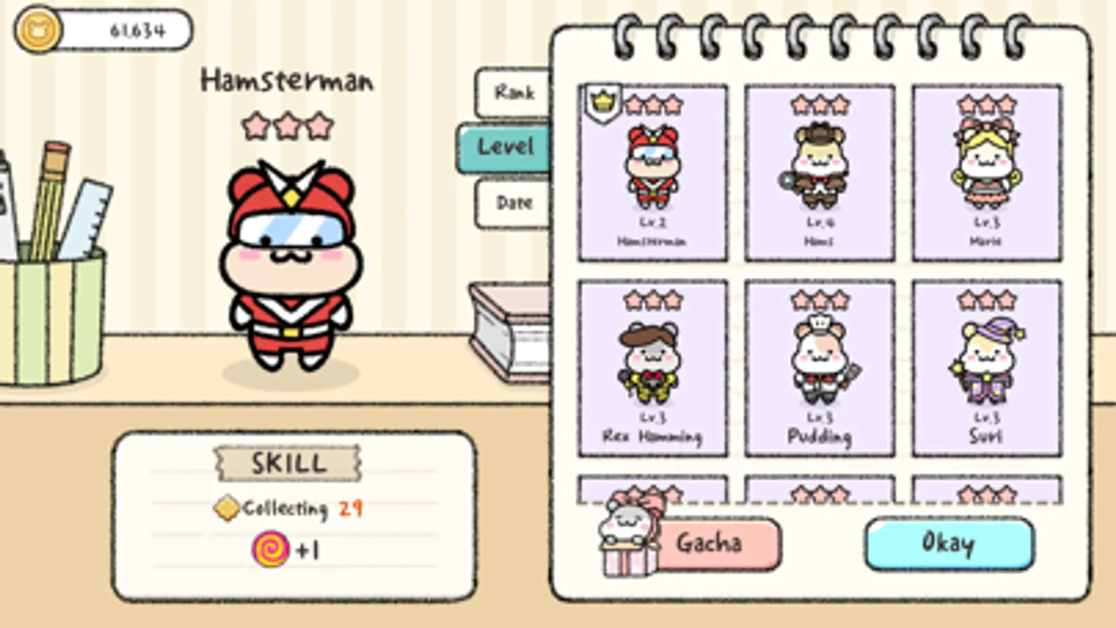 Decorate Hamster Town as you enjoy various episodes with your cute hamster friends.