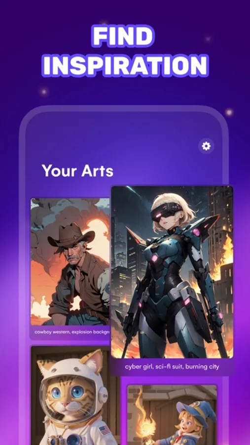 The perfect AI art generator for your art ideas, lockscreen, tattoo, etc. Watch as AI generates your ideas into beautiful digital paintings! Get ready to be mind-blowing with our AI based technology!
