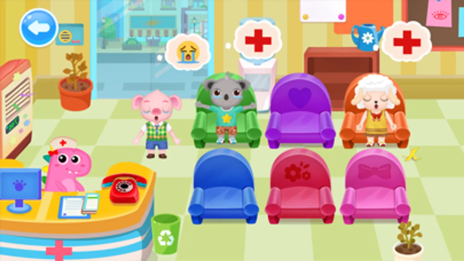Play as the dinosaur town vet to help dinosaur town animals. They come to the hospital for help. Make them smile again. Explore the dinosaur town animal help center!