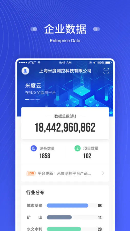 米度云利用手机移动端的便携优势,实现了实时、历史数据的查看,预警信息的推送和处理,通过三维、全景、地图多方式形象的展现项目实况,同时具有设备详情、文件管理、报表查看、项目运行分析等功能,让用户可实时的掌握项目的全面状况,达到对危险事故预警的目的。