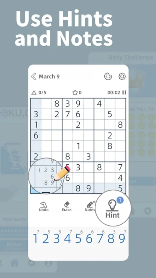 - Daily Challenge & My Challenge: you can challenge every day to practice your skills of playing sudoku