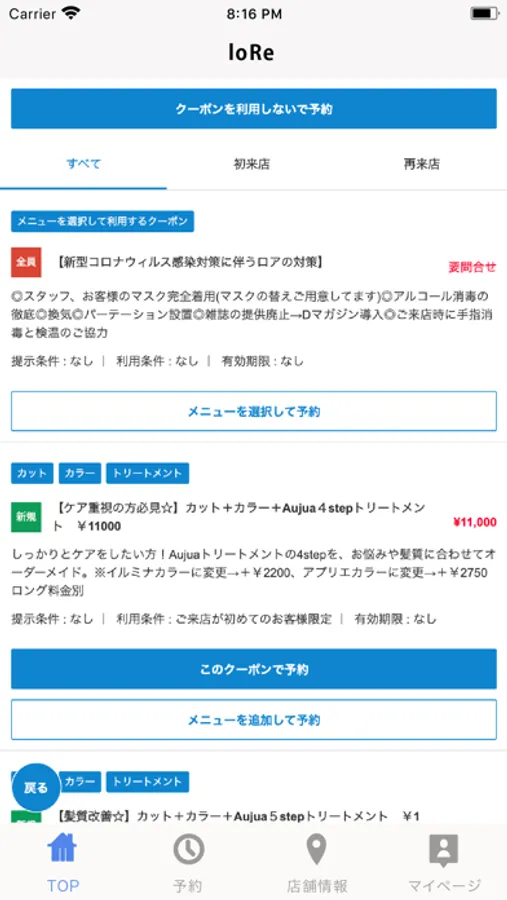 お得なクーポンが配信されます。ネット予約時にクーポン利用での予約も可能なので来店時もスムーズに施術頂けます。