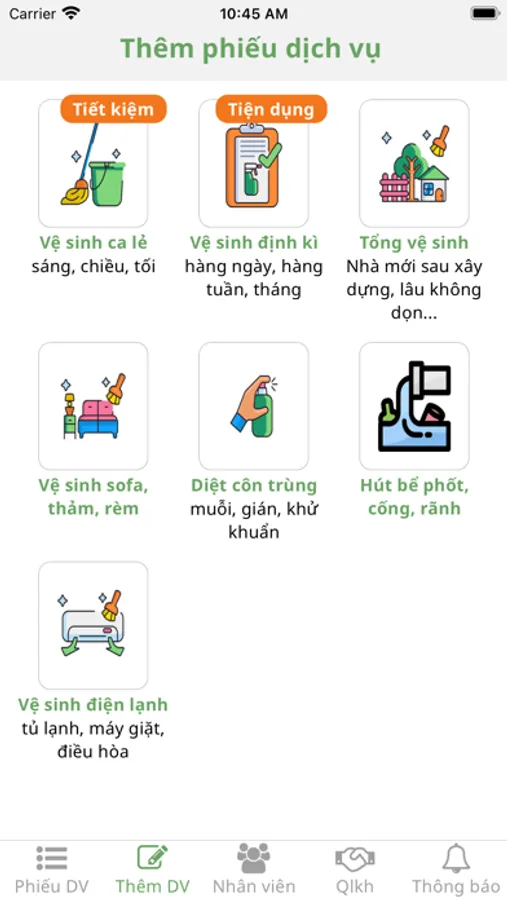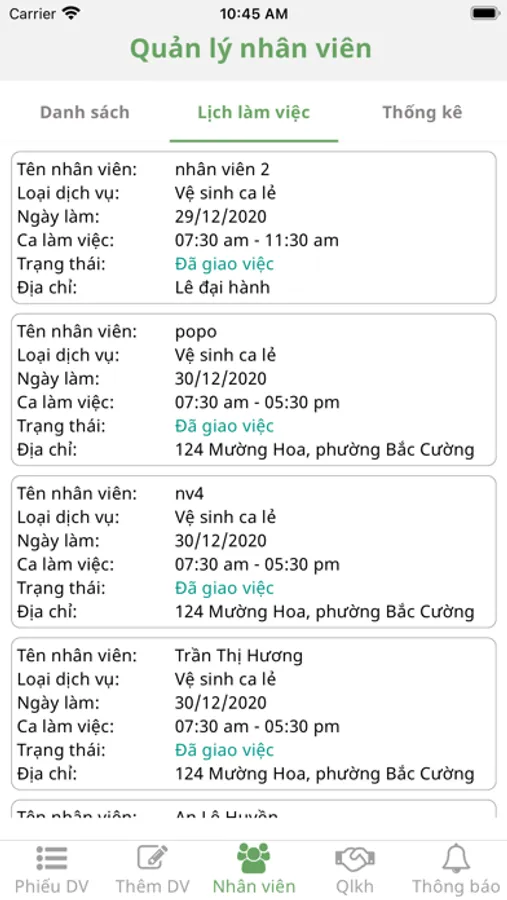 - Tạo các phiếu dọn vệ sinh và phân công cho nhân viên