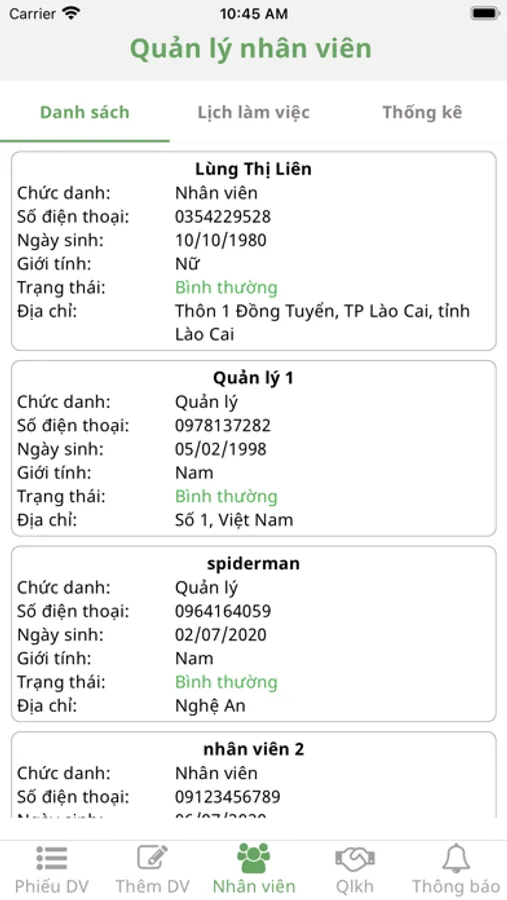 - Quản lý nhân viên đang có lịch hẹn hoặc chưa được khách đặt lịch