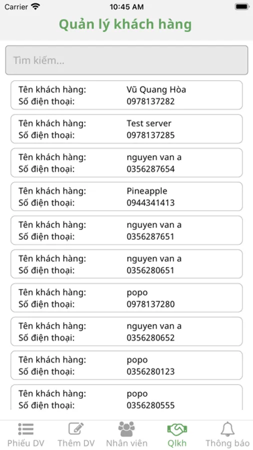 - Quản lý danh sách các khách hàng thường xuyên sử dụng dịch vụ của công ty